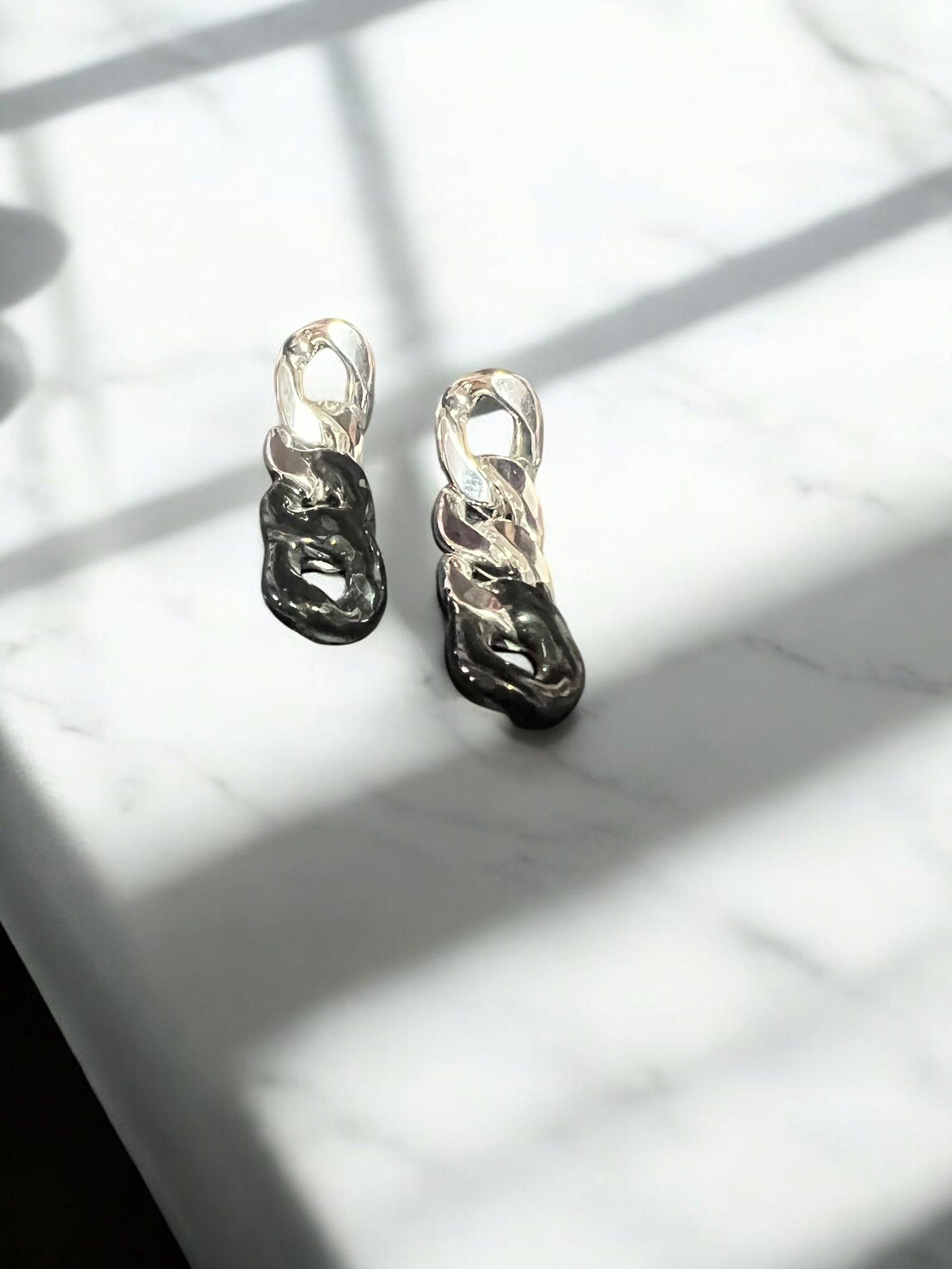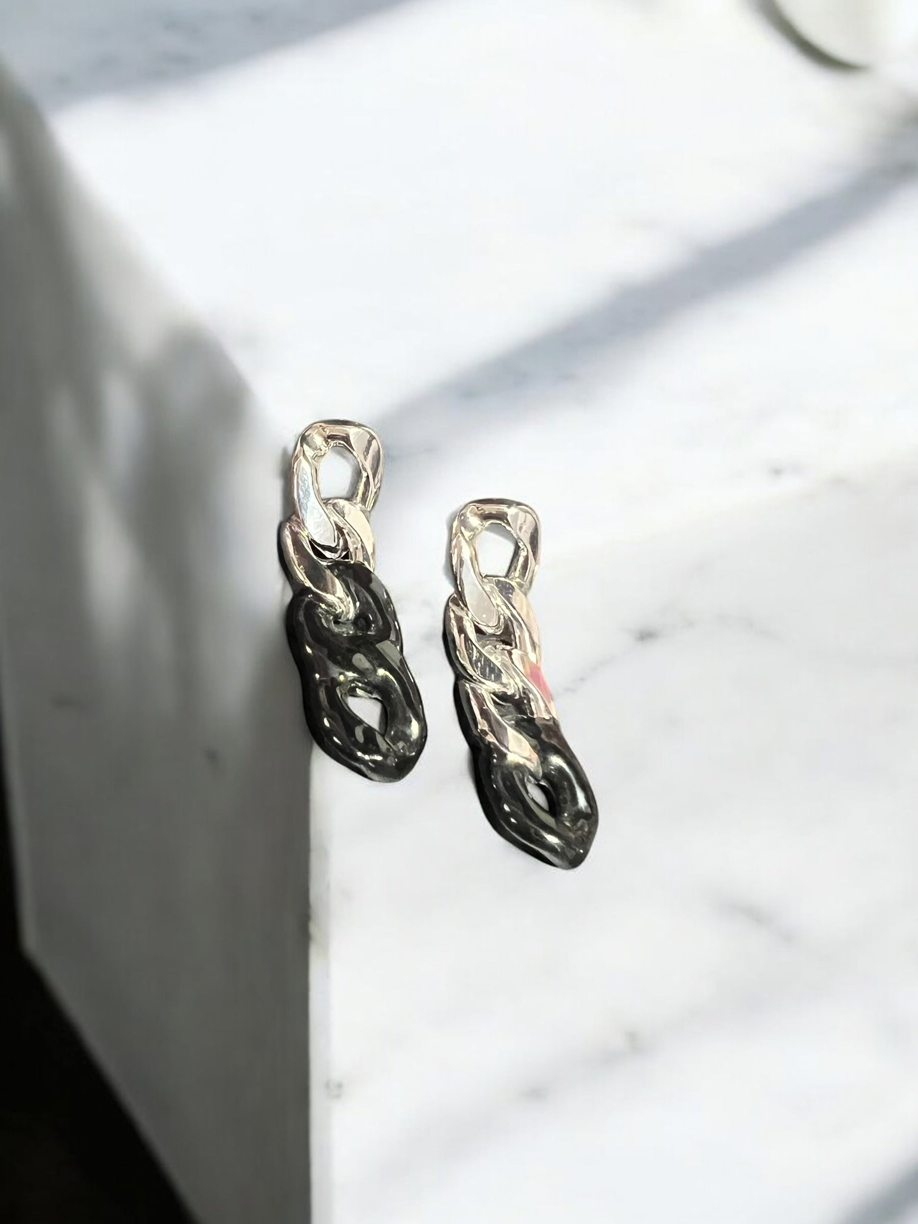 Aretes largos cadena plateado y negro