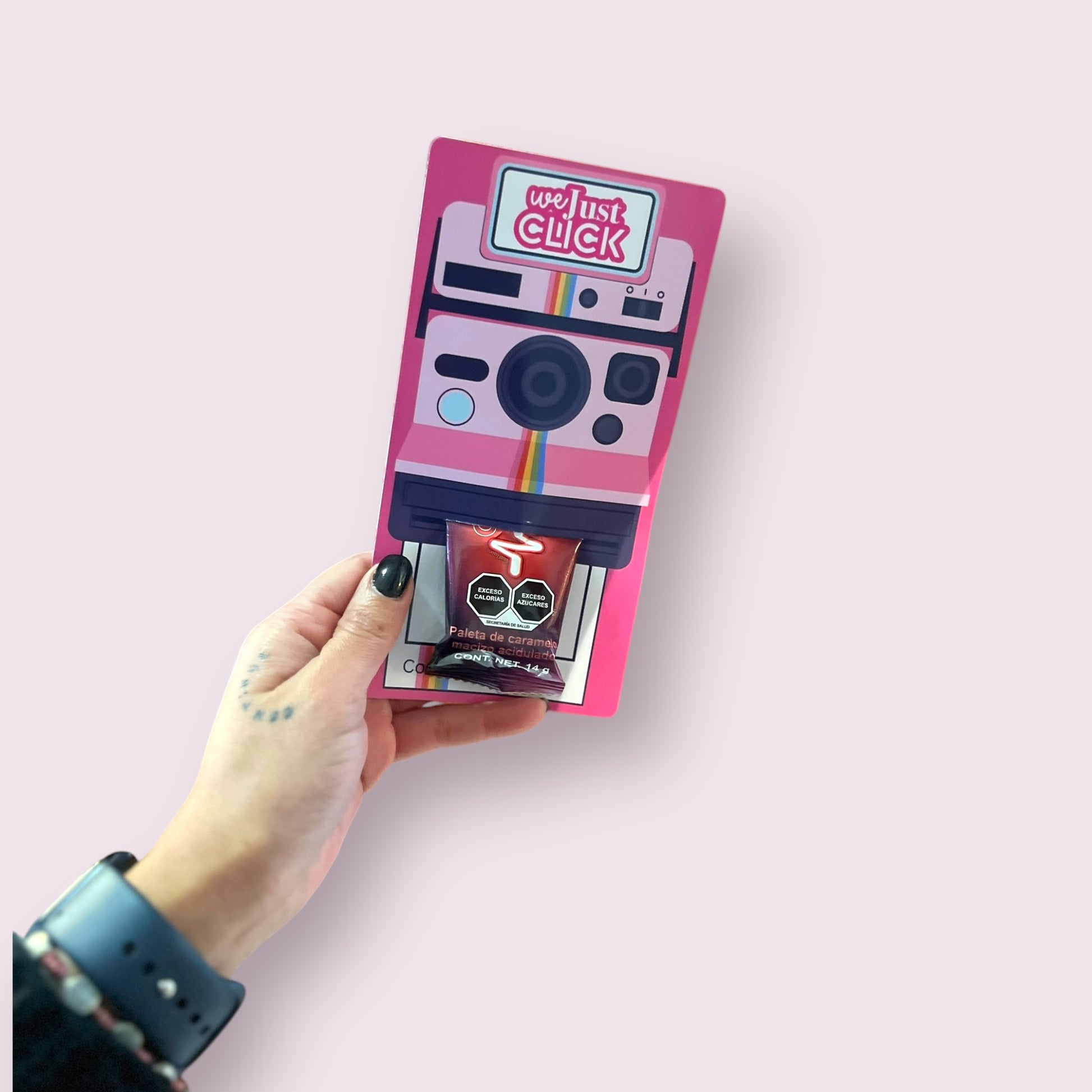 Tag Polaroid con detalle de paleta corazon Neon o bolsita de Krankys